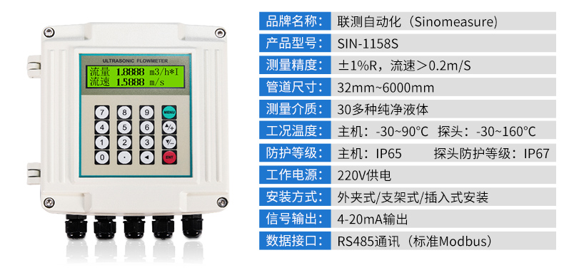 SIN-1158R外夾式或者管段式超聲波流量儀表是以“速度差法”為原理,測量圓管內液體流量的儀表。