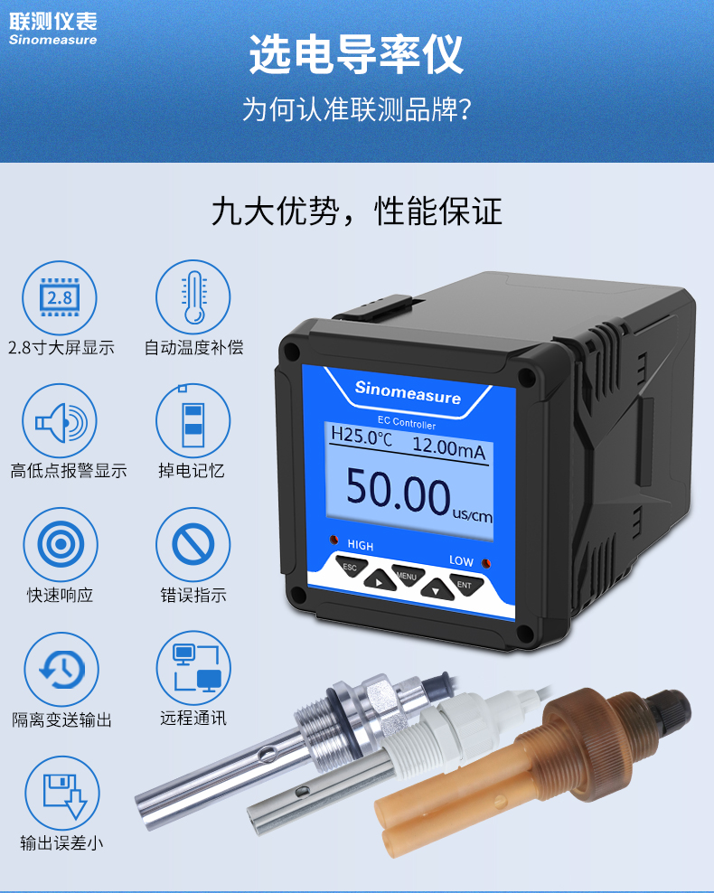 SIN-TDS210-C工業(yè)電導(dǎo)率儀表,廣泛應(yīng)用于火電、化工化肥、冶金、環(huán)保、制藥、生 化、食品和自來水等行業(yè)??刂破髦饕獙θ芤褐械碾妼?dǎo)率/總?cè)芙夤腆w/ 電阻率和溫度進(jìn)行連續(xù)監(jiān)測。