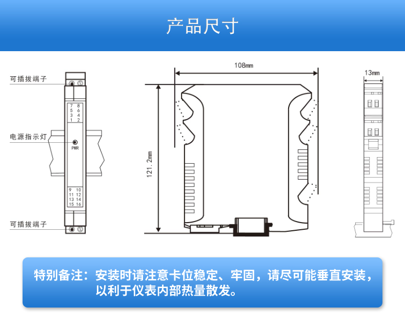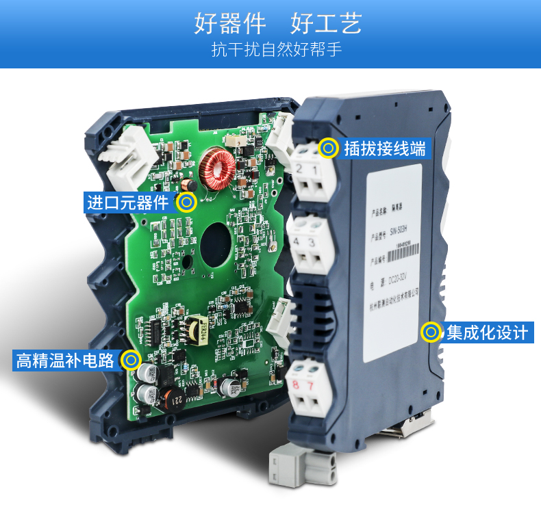將PT100等熱電阻跟熱電偶信號轉換成各種電流、電壓等標準模擬量信號,可以與PC機、PLC、DCS等實現工控監測連接。抗干擾能力強,遠傳不受其他設備影響。輸入、輸出選擇范圍寬,準確度高。電源可選擇,導軌安裝便于檢測與安裝。廣泛應用于各種對溫度集中測量的監控系統中。