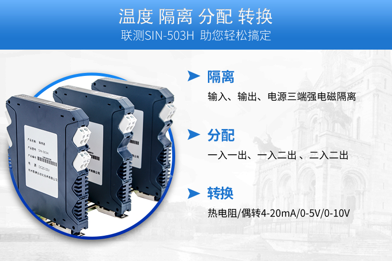 將PT100等熱電阻跟熱電偶信號轉換成各種電流、電壓等標準模擬量信號,可以與PC機、PLC、DCS等實現工控監測連接。