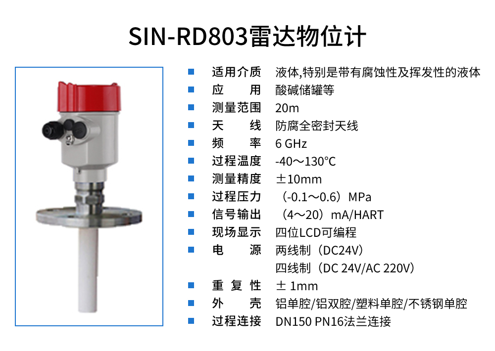 SIN-RD803T雷達物位計_適用于帶有腐蝕性及揮發性的液體_