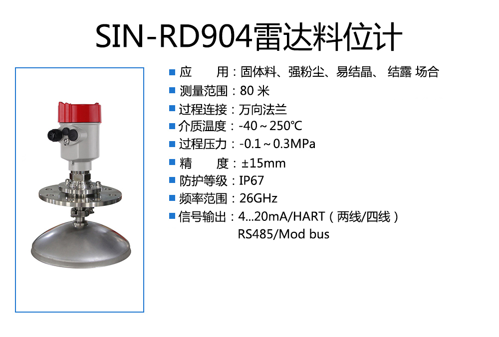 90 系列傳感器是 26G 高頻雷達式物位測量儀表,測量最大距離可達 80 米。