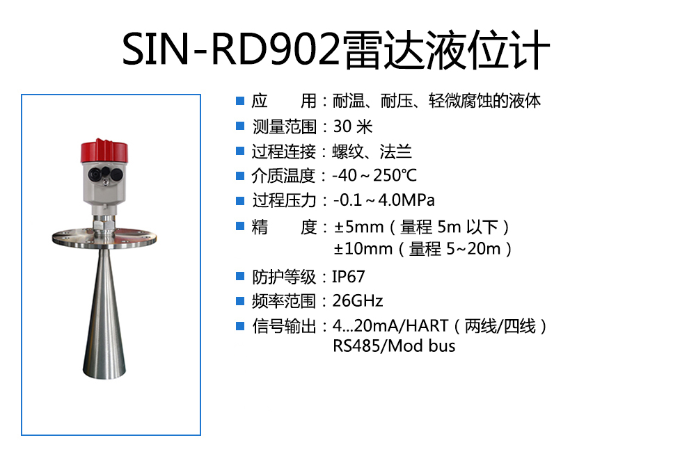 90 系列傳感器是 26G 高頻雷達(dá)式物位測量儀表,測量最大距離可達(dá) 80 米。天線被進(jìn)一步優(yōu)化處理,新型快速的微處理器可以進(jìn)行更高速率 的信號分析處理,使得儀表可以用于各種強(qiáng)腐蝕性液體的測量。