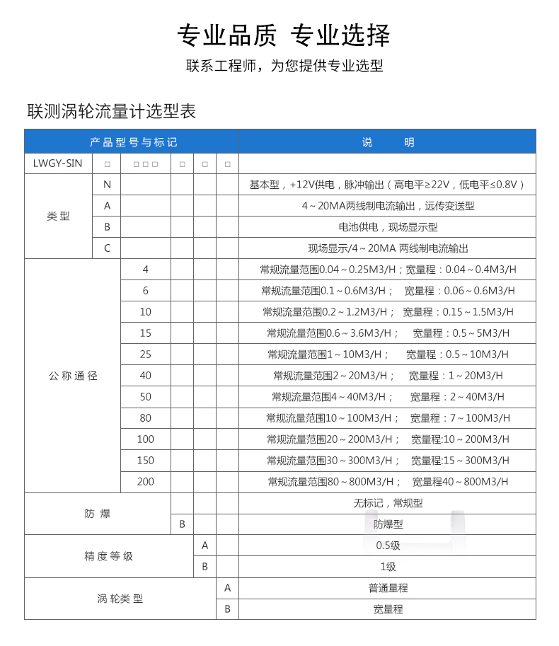 流體流經傳感器殼體,由于葉輪的葉片與流向有一定的角度,流體的沖力使葉片具有轉動力矩,克服摩擦力矩和流體阻力之后葉片旋轉,在力矩平衡后轉速穩定,在一定的條件下,轉速與流速成正比,由于葉片有導磁性,它處于信號檢測器(由永久磁鋼和線圈組成)的磁場中,旋轉的葉片切割磁力線,周期性的改變著線圈的磁通量,從而使線圈兩端感應出電脈沖信號,此信號經過放大器的放大整形,形成有一定幅度的連續的矩形脈沖波,可遠傳至顯示儀表,顯示出流體的瞬時流量或總量。