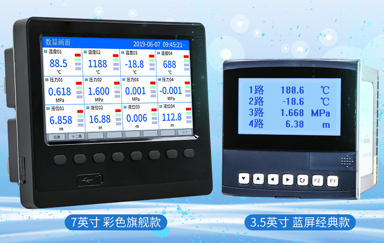 無(wú)紙記錄儀是將采集的數(shù)據(jù)/運(yùn)算數(shù)據(jù)以時(shí)間為基軸記錄在儀器內(nèi)部的存儲(chǔ)系統(tǒng)中,無(wú)消耗任何常用的記錄設(shè)施,如:紙張、筆墨。記錄在儀器內(nèi)部的存儲(chǔ)數(shù)據(jù),通過運(yùn)算、模擬后顯示在液晶屏。常用顯示用液晶屏比較廣泛。在液晶屏屏幕上,可以顯示數(shù)字顯示、棒圖顯示、曲線顯示、報(bào)警列表等。無(wú)紙記錄儀采集的數(shù)據(jù),常用的有:溫度、壓力、流量、液位、電壓、電流、濕度、頻率、振動(dòng)、轉(zhuǎn)速等。