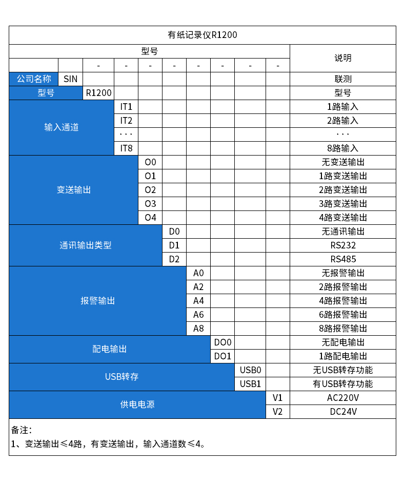 SIN-R1200有紙記錄儀最多具有8路輸入通道,通道之間采用點點隔離的方式。每路通道均可以接收多種信號,如:熱電偶信號、熱電阻信號、電壓信號、電流信號等。
